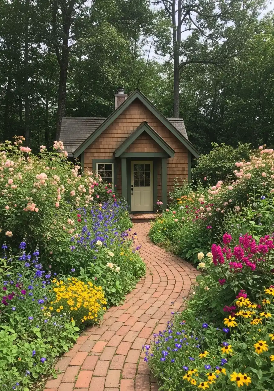 Use a path material that won’t get slick. Brick is great, and you can edge it with low plants so it feels tucked in. Then plant taller flowers farther out so the path stays open. The colors here are mixed, but not chaotic. It’s like the garden is happy, not stressed.