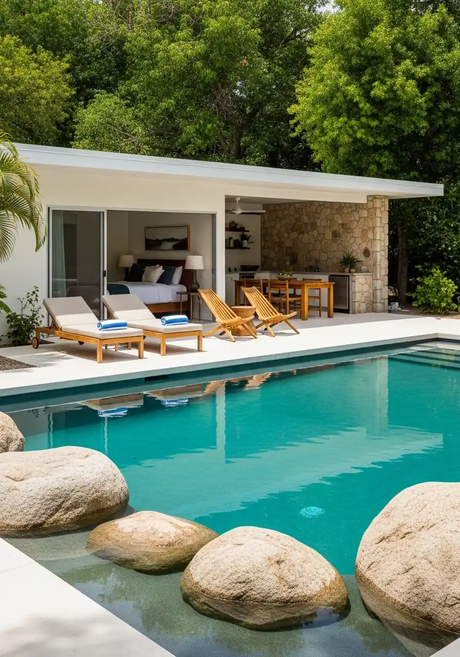 If you want to go a step further, consider creating a natural swimming pool with a small stream or river running through the landscape. These types of pools blend beautifully with the environment, giving your outdoor space a harmonious feel with nature.