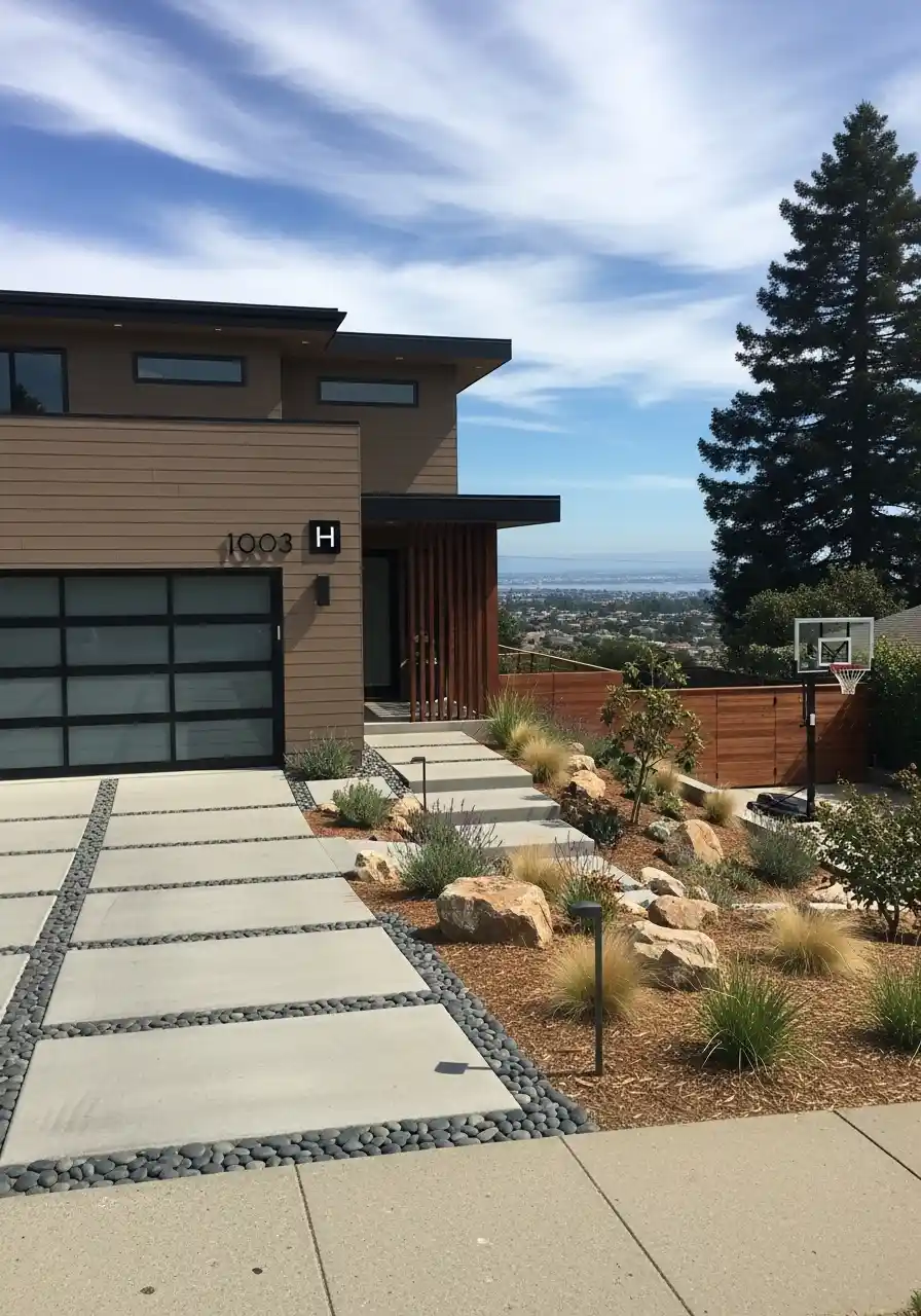 Sleek Walkways and Soft Greens for a Modern Look