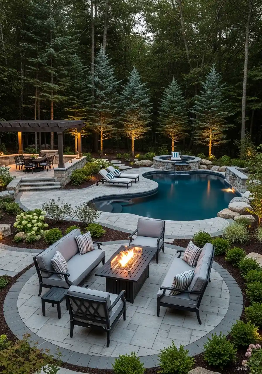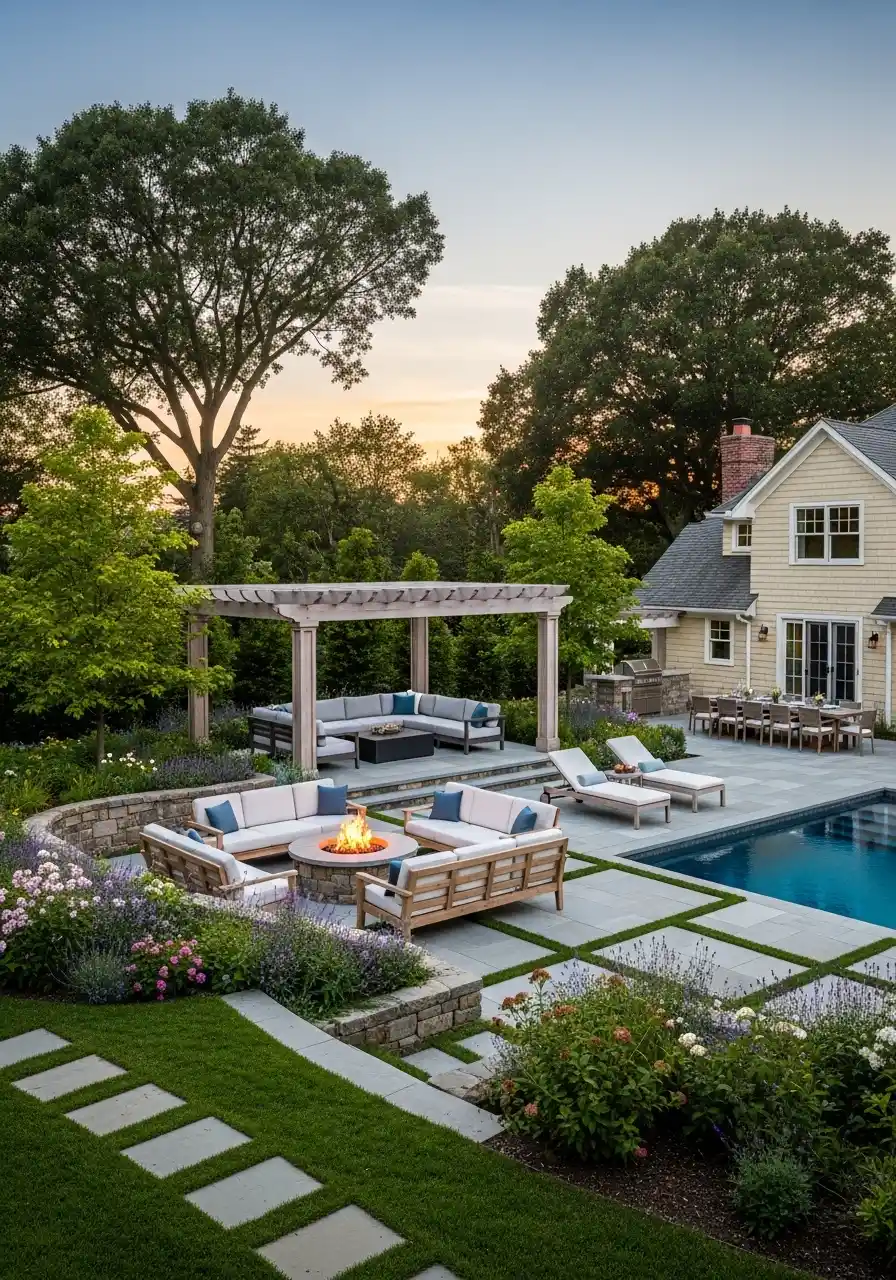 Backyard landscaping designs that feel like a resort with a pool, pergola, and fire pit