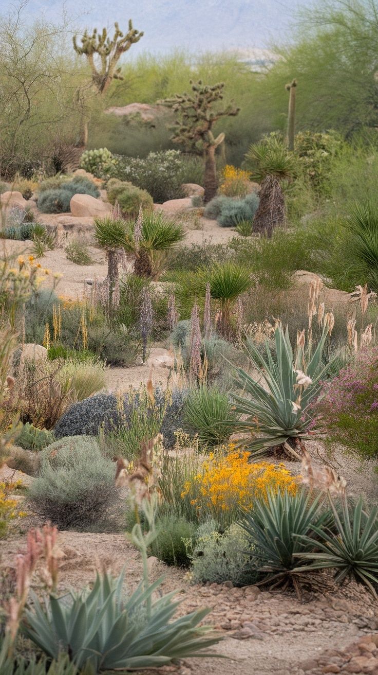 Naturalistic Desert-Native Scene With Yucca and Soft Shrub Layers