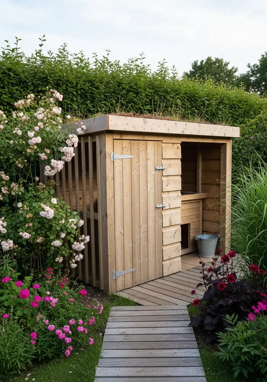 A tip: put a small ramp or step so older dogs can get in easy. Add hooks for towels and a leash so you don’t chase your dog around dripping water everywhere. The path to the shed is also helpful, so you don’t slip in grass. This is more pet friendly backyard landscaping because it makes cleanup part of the yard, not a big indoor mess.