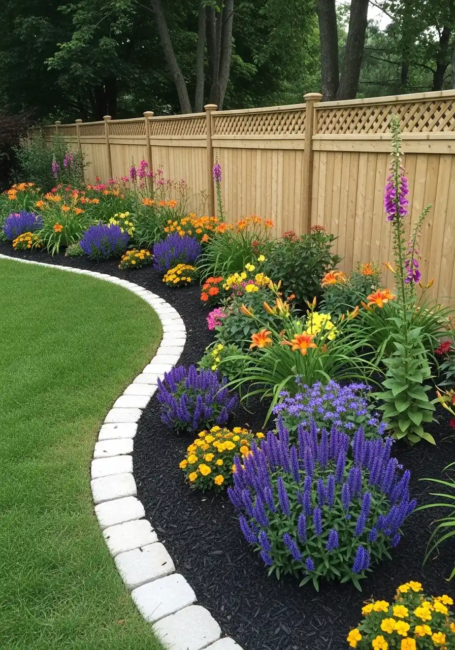 If you’re copying this, the main trick is repeat 2–3 colors again and again. It stops the border from looking like a random pile of plants from the clearance rack (I have done that… it’s humbling). Also, fence lines dry out faster, so I’d add drip irrigation or soaker hoses under the mulch. This is one of those border ideas for garden beds where watering makes or breaks it. Dry fence beds look sad real quick.