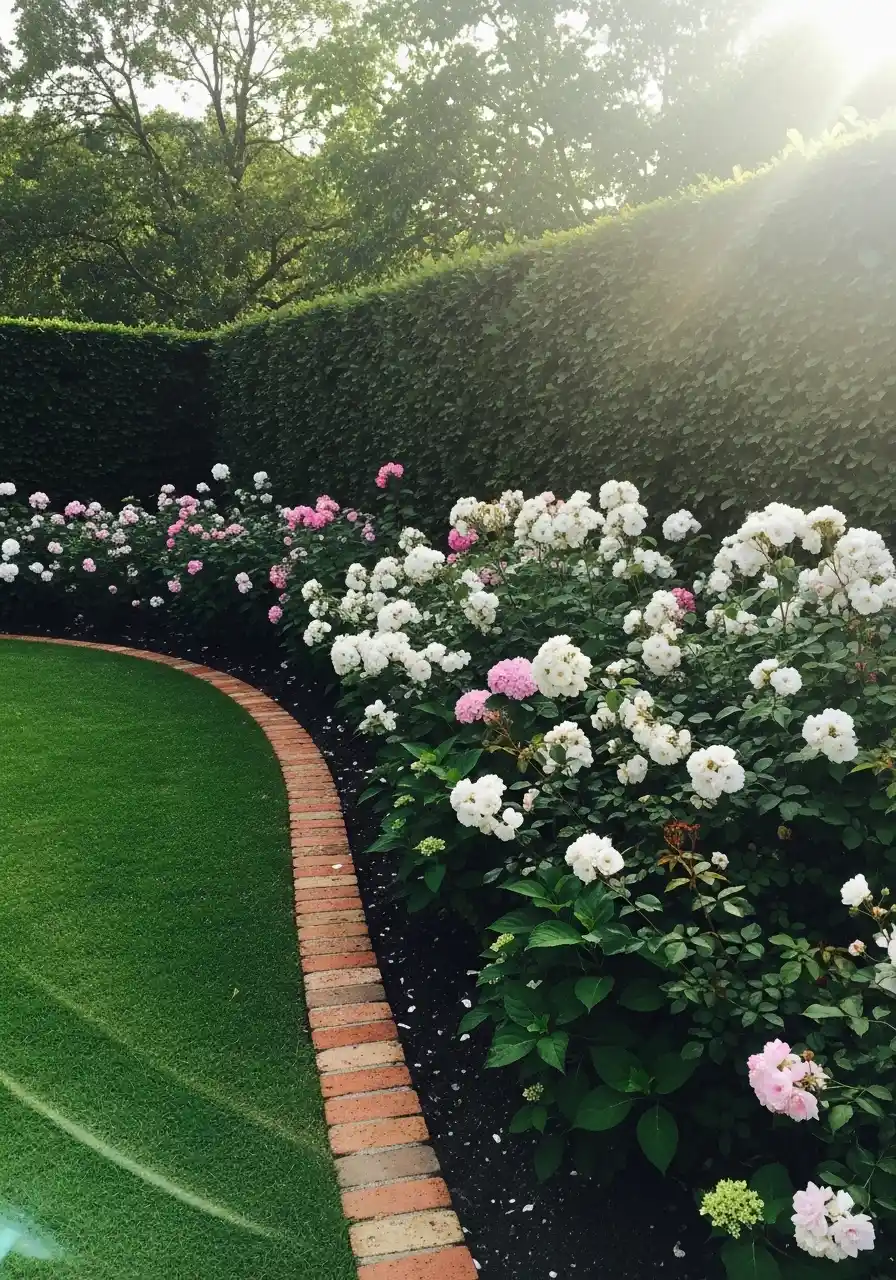 Also, color can shift depending on soil. If you’re chasing more blue tones, you might need soil amendments, but don’t stress if you get pink instead. Pink hydrangeas against a white fence still looks ridiculously good. This is a classic garden bed edging idea that doesn’t feel old, it feels comforting.