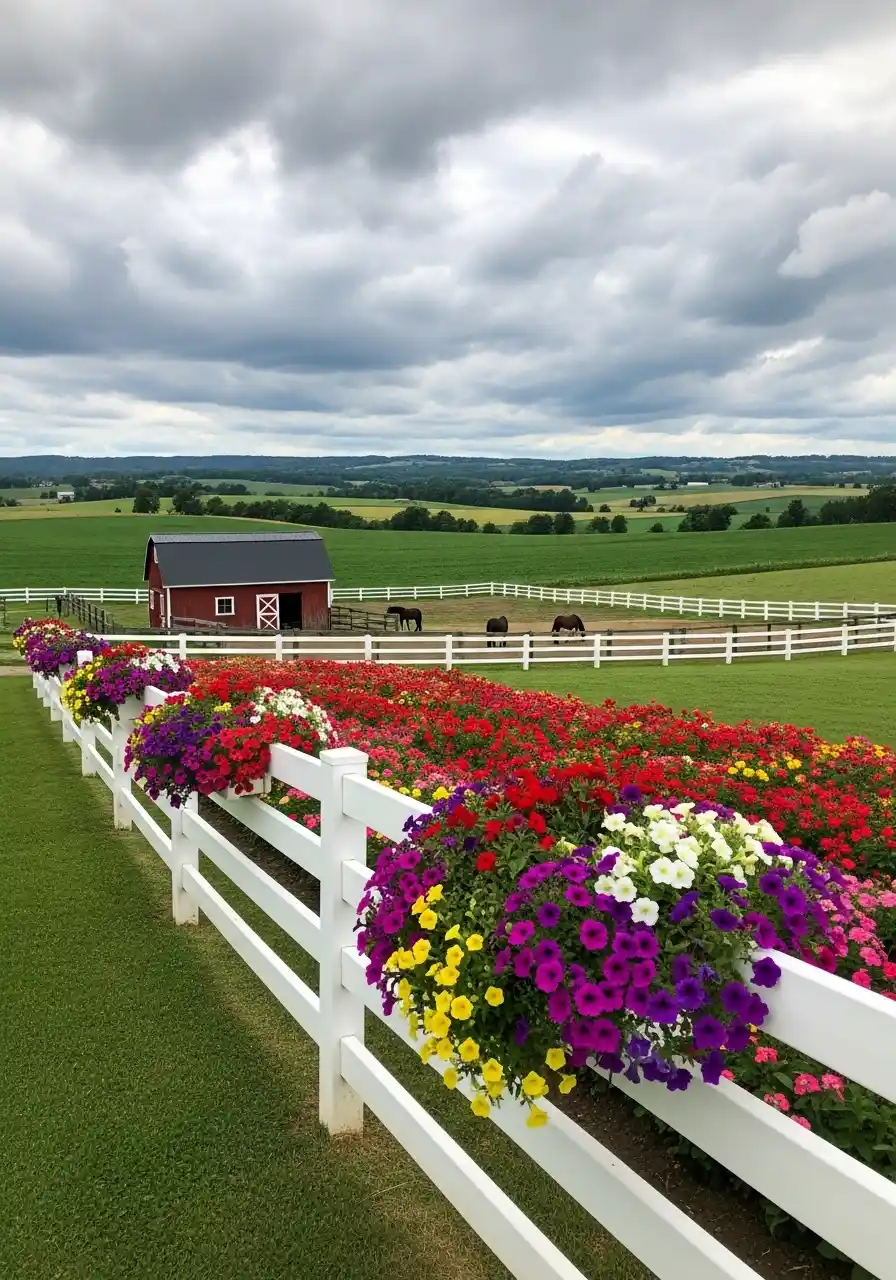 To do it right, pick a few pot colors and stick to them so it doesn’t look like a yard sale. Put the brightest pots closer to eye level, then run a low border of flowers beneath to connect everything. I’d use pansies or small petunias for the ground layer since they read well from a distance. And spacing matters: don’t hang pots on every single fence panel. Leave breathing space so the “cute moments” stand out more.
