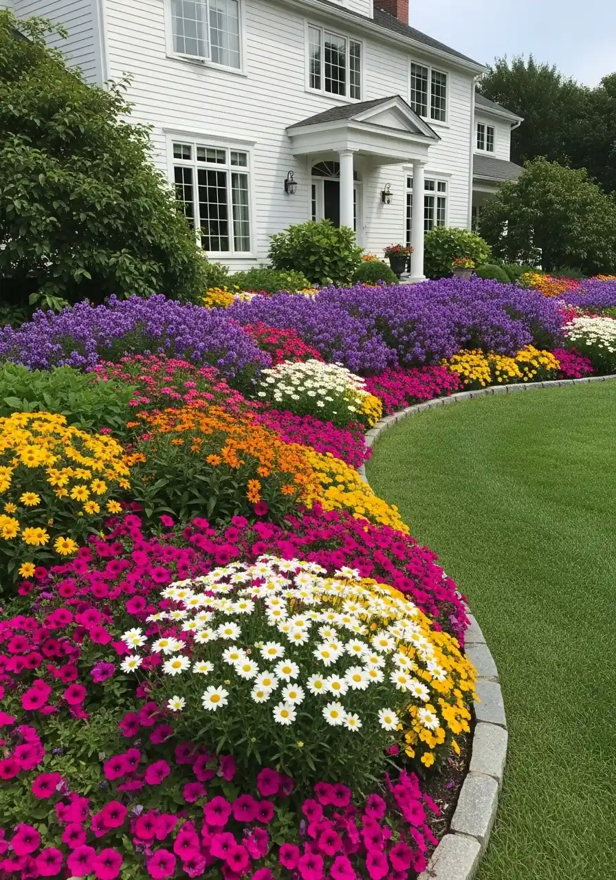 Cottage-style river of color with stone edging