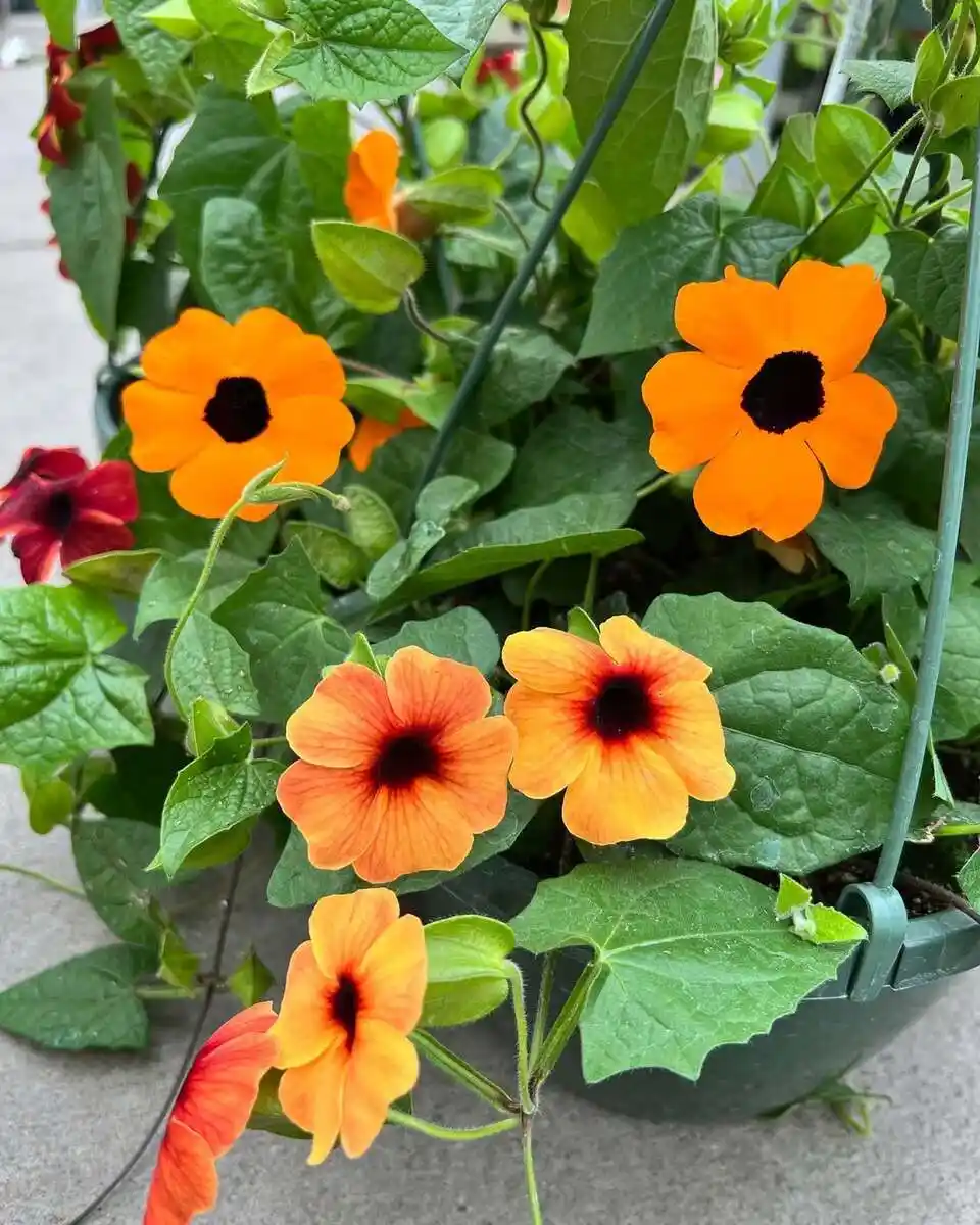 Black-eyed Susan vine (Thunbergia alata) — cheerful climber for tall baskets