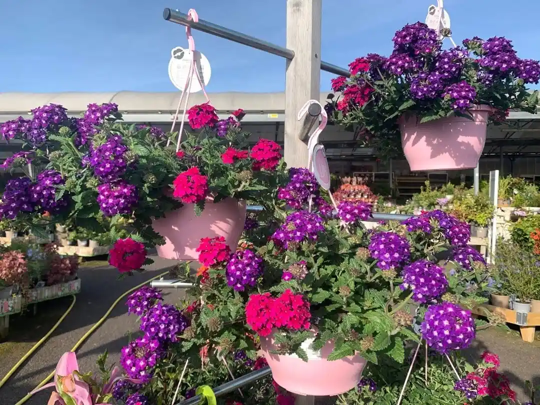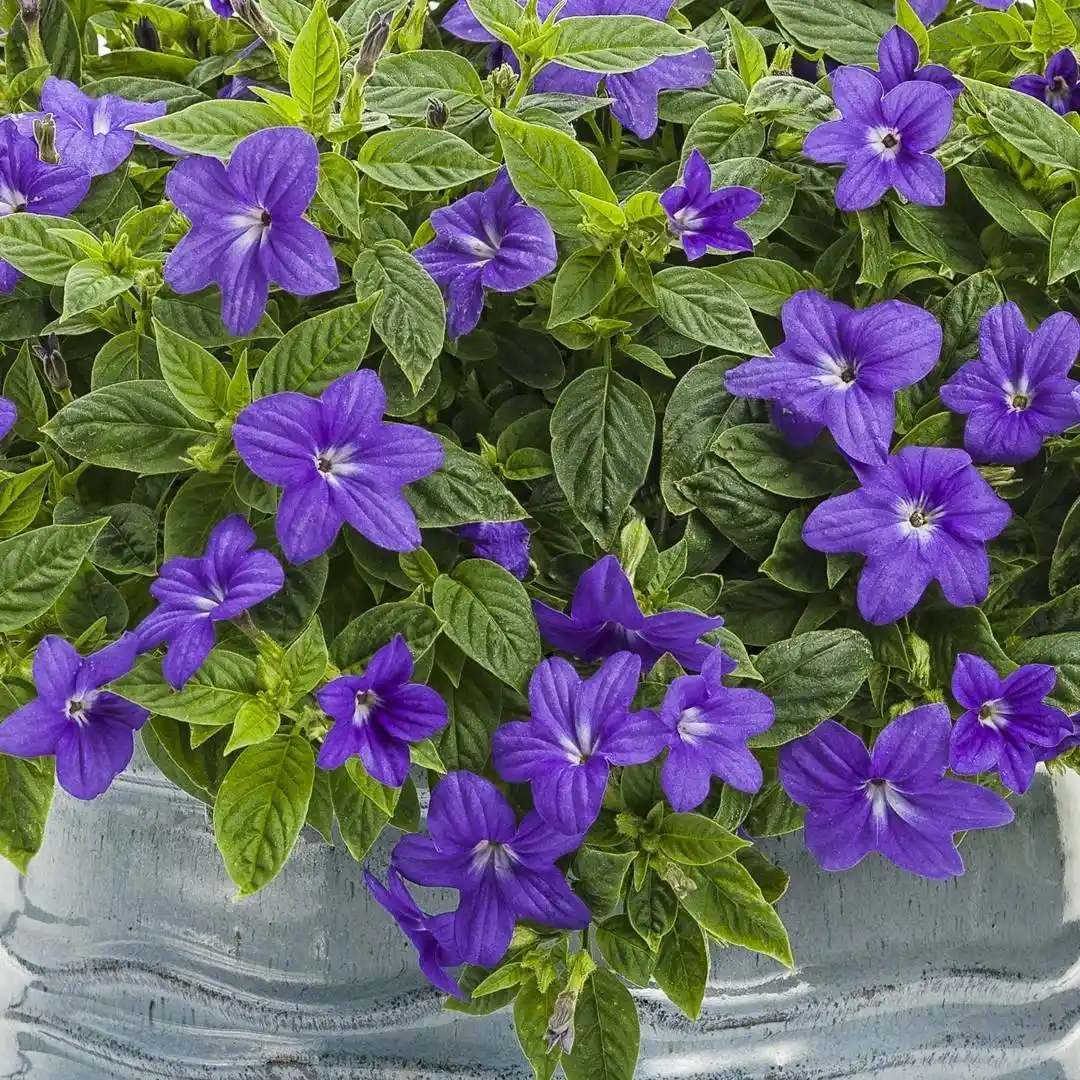 Plant in full sun to part sun, very well-drained soil (they sulk in soggy media), and feed lightly throughout the season. They’re perennial in Zones 9–11 but grown as annuals elsewhere. For baskets, choose 12–14″ diameter so the plant can mound and spill. These are top performers for continuous bloom and nectar.