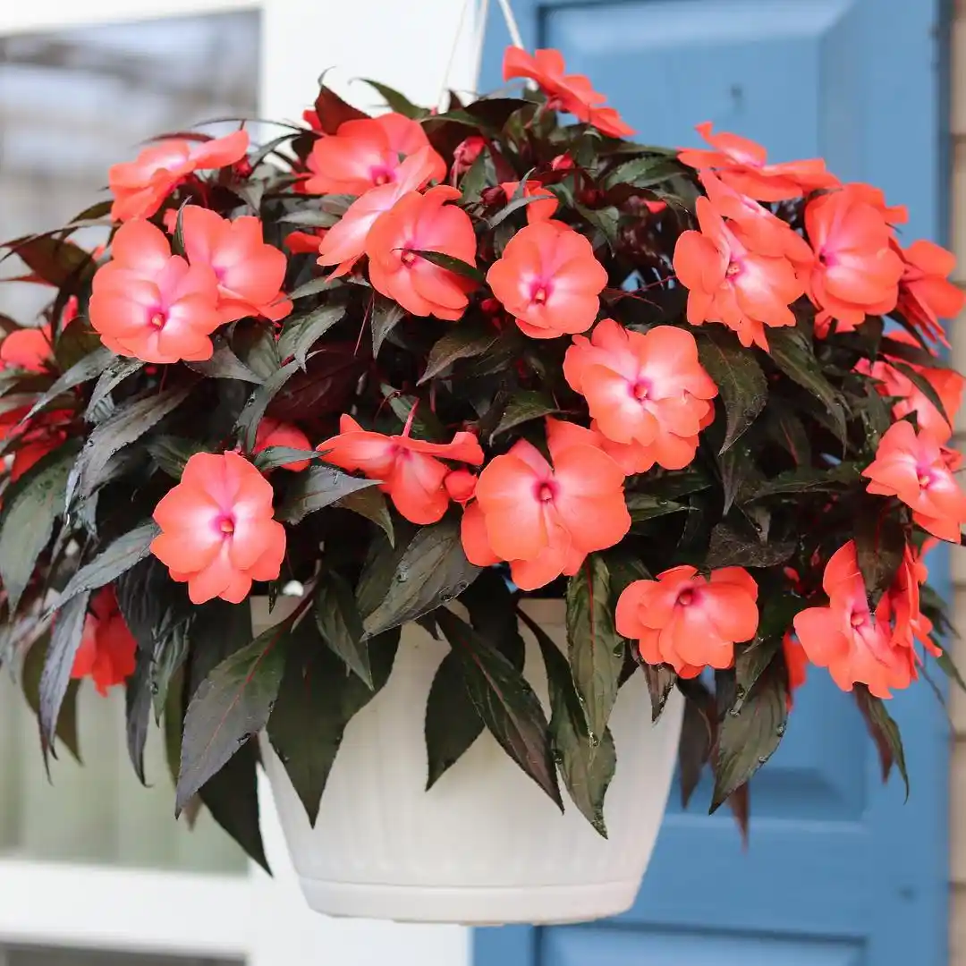 Impatiens (including New Guinea) — shade-friendly hanging flowers to attract hummingbirds