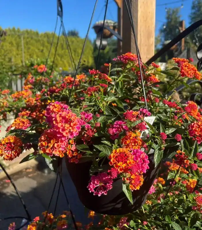 Grow in full sun, lean well-drained soil, and let it dry slightly between waterings. Trailing forms like Lantana montevidensis work beautifully in elevated baskets. In Zones 8–11 lantana can act as a perennial; elsewhere it’s annual. Give it a haircut midseason for a fresh wave of flowers.