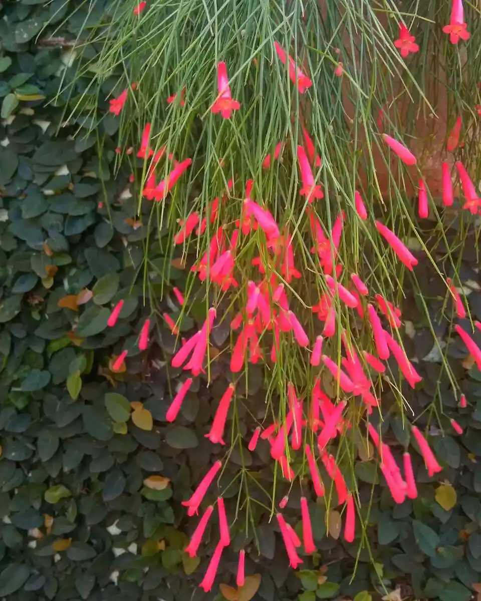 Russelia (firecracker plant) — fountain of red tubes for big baskets