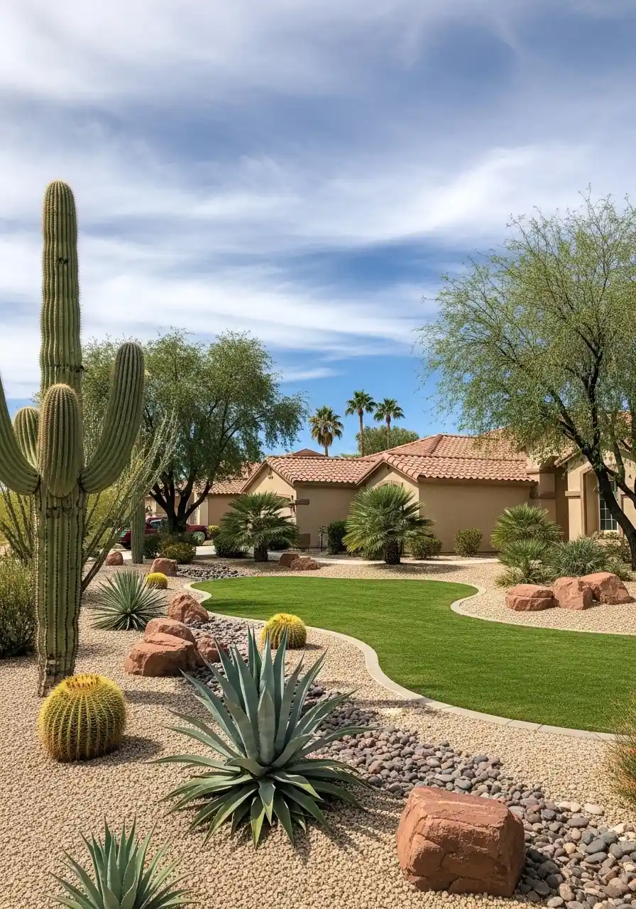 I think the best ones use gravel, stone paths, drought tolerant shrubs, ornamental grasses, and focal-point succulents. A small recirculating fountain or shade structure can add comfort without using much water.
