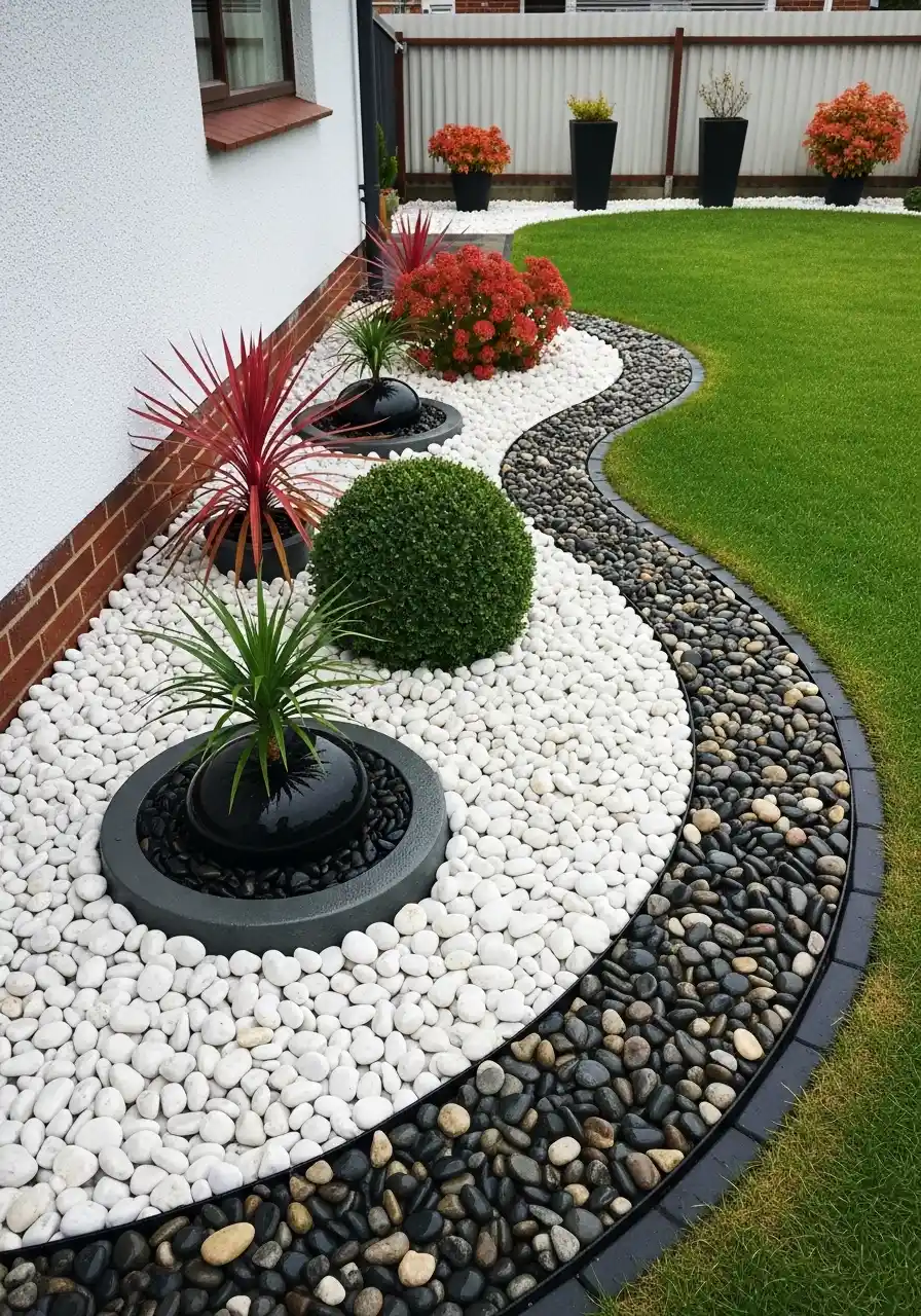 7. Can I mix black and white stones in a pebble border garden without it looking weird?