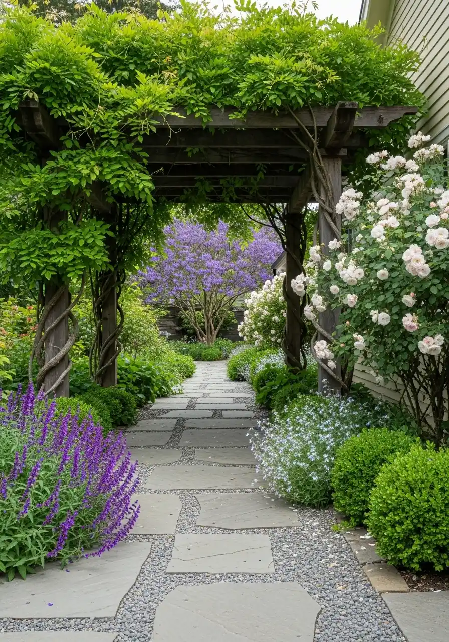 A vine-covered arbor walkway that feels like a secret entrance