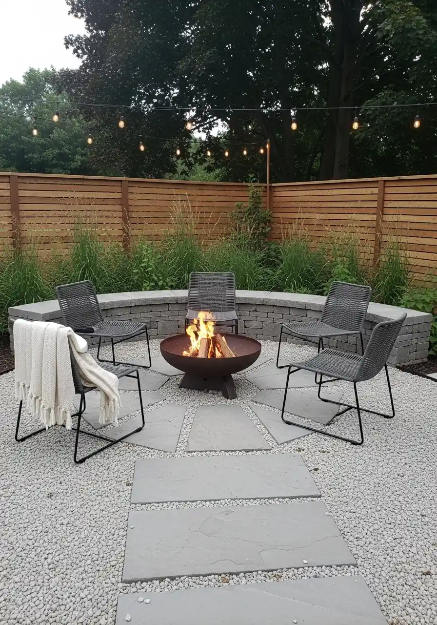 If you try it, use pavers in a circular pattern around the fire pit, then keep the rest of the yard more straight-lined. Add string lights overhead for that cozy “campfire but civilized” feel. And keep seating low and comfy. I’m gonna say it: stiff chairs ruin fire pit spaces. You want chairs that make people stay longer than they planned.