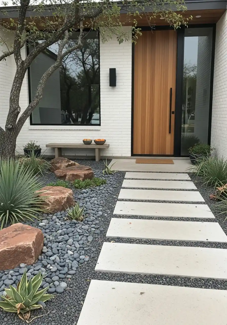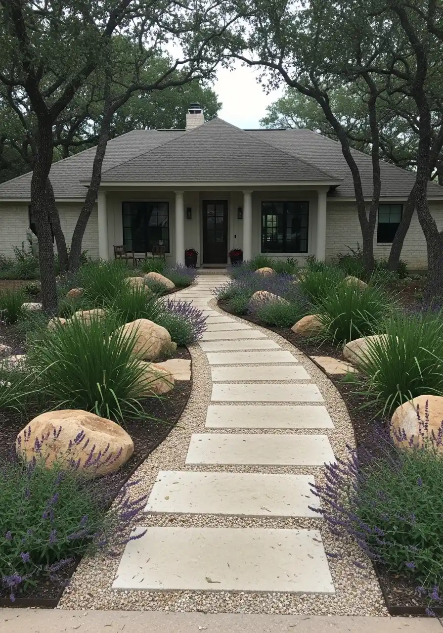 For front yard landscaping in Texas, this works great if you want low water and low drama. Gravel is your friend, but only if you edge it right. Put metal or concrete edging so the gravel doesn’t wander all over your walkway. Trust me, it will try.