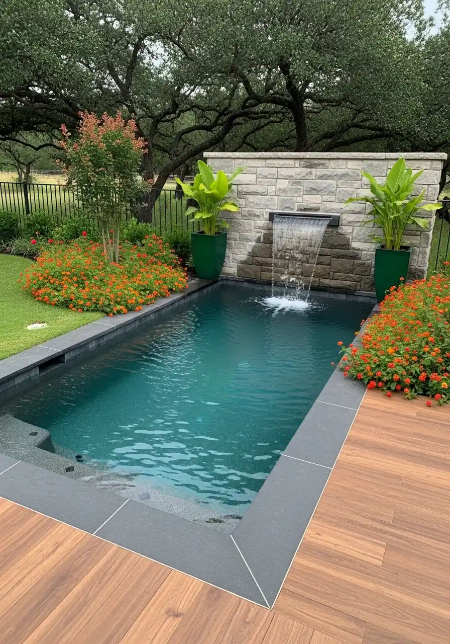 But I gotta admit something. Green walls look amazing… and they can also be high maintenance if you pick the wrong plants. My hack: use a vine wall (like creeping fig) or layered planters with tough evergreens instead of a fussy living wall system. Keep the spillway wide enough to sound like water, not like a leaky faucet. This is one of those Texas pool landscaping inspirations that works best when you keep it simple and bold.