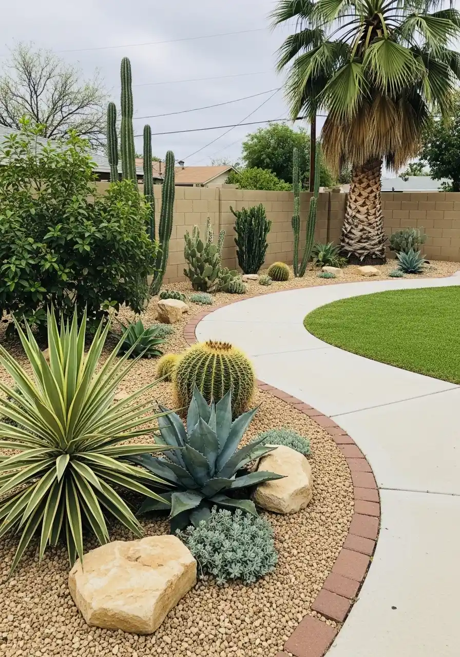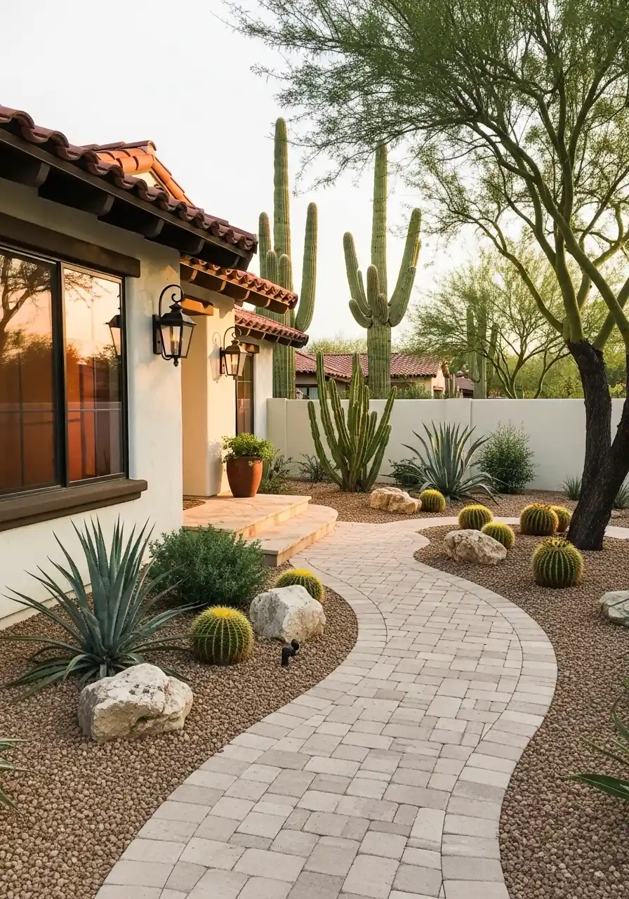 A good trick: place one “destination” plant at the end of the path. Like a tall cactus or a big agave. It makes the path feel like it has a purpose, not just a random curve.